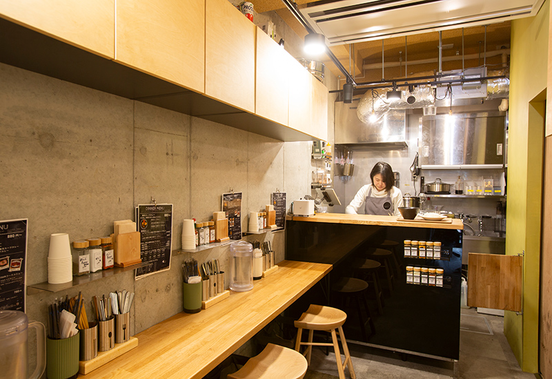 お店があるのは、JR大塚駅北口から3分ほど歩いた大通り沿いです。カフェのような外観で、入口から入ってすぐ脇に券売機がありますが、メニューが充実しているので初めて行く方は席にあるメニューでまずはじっくり選ぶのもありです。