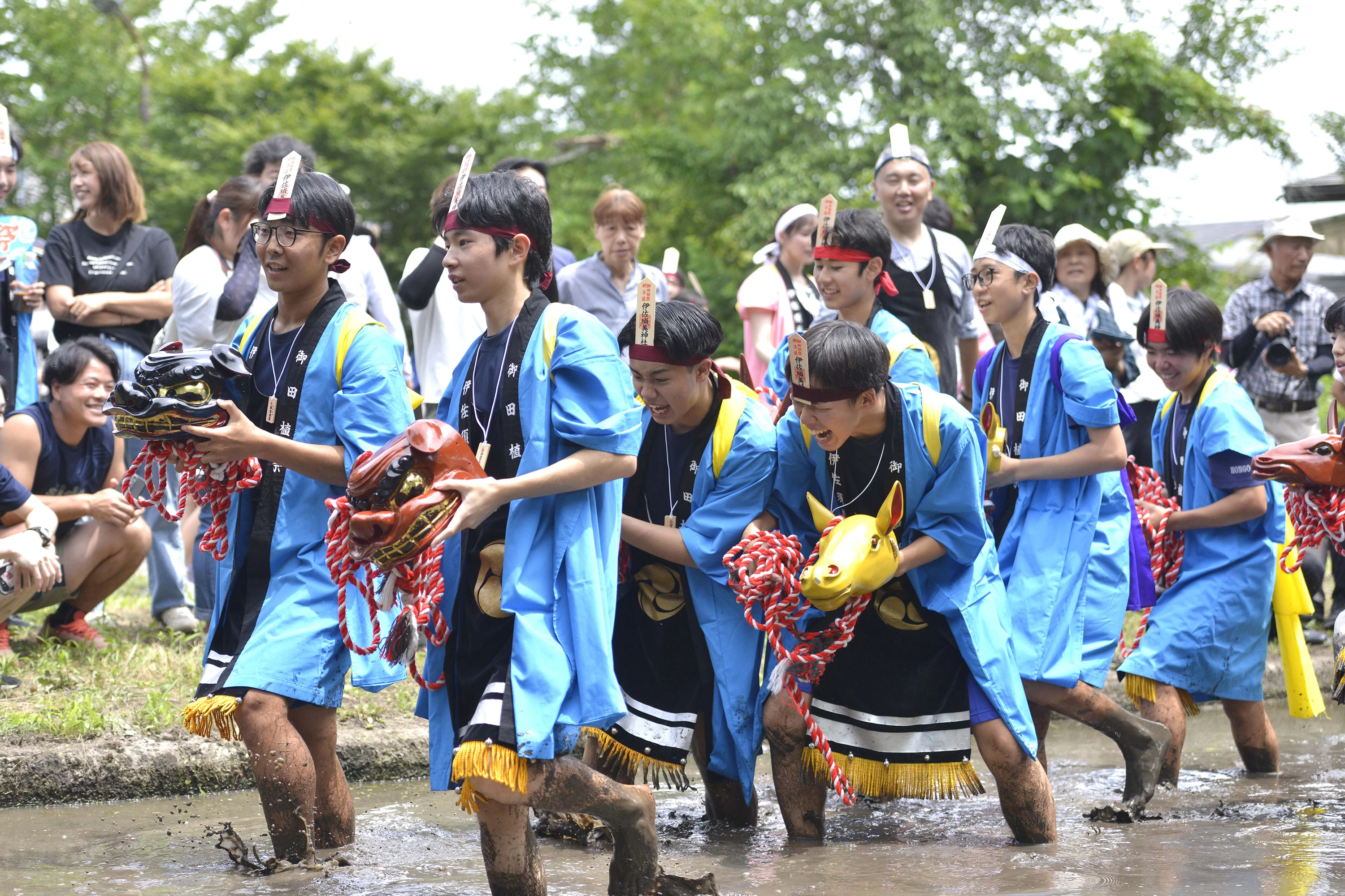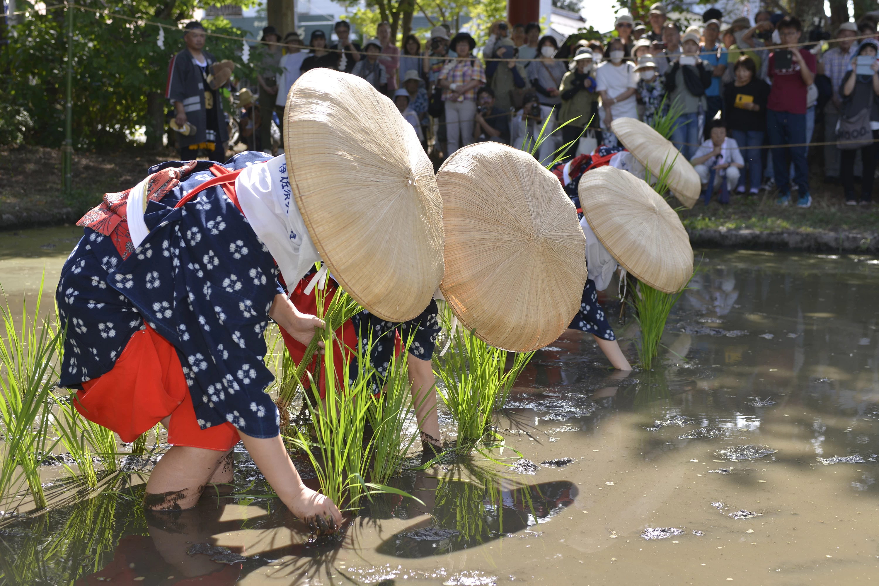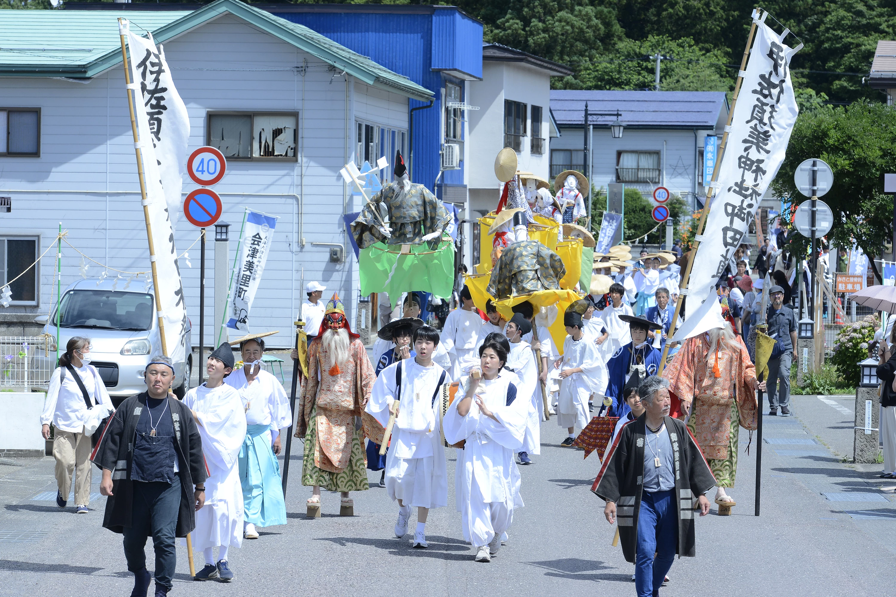 五穀豊穣を祈願する伝統的な神事。江戸時代には陸奥国を代表する祭礼「会津祭」として全国に知られ、現在は国の重要無形民俗文化財に指定されている。 |
