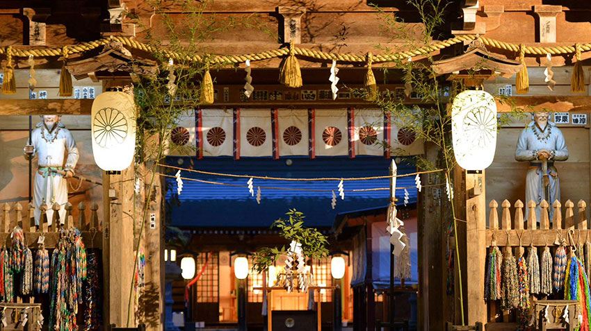 技芸上達とともに、短冊の願い事の成就を御神前においてご祈祷。また、楼門の祭壇では平安時代の宮中行事「乞巧奠」を再現した巫女舞を奏し、二星を祀る。 |