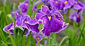 「あやめ苑」では200品種以上ものアヤメ、ハナショウブ、カキツバタが咲き誇り、期間中はさまざまな神賑行事が開催される。庭園を誰もが自由に散策して楽しめる。 |