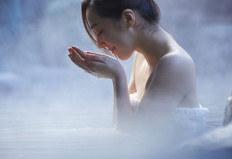 01.水深160cmの水風呂。“日本三大美人湯”のひとつ・湯の川温泉を冷やして使用