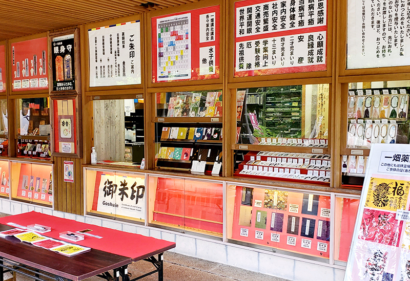 01.寺務所では御朱印やお守り、御朱印帳が授与されている