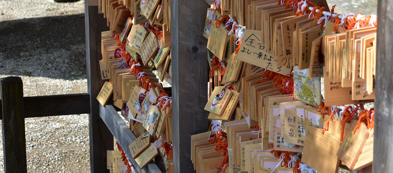 「二柱神社」では、良縁祈願や子宝祈願など良い縁に巡り合えるようにとお参りする参拝者が絶えない。季節や行事に合わせて限定御朱印が授与所で頒布されている。縁結びのパワースポットとして恋が実ると好評の「勾玉ブレスレット」や可愛らしい「ハート絵馬」も楽しい。