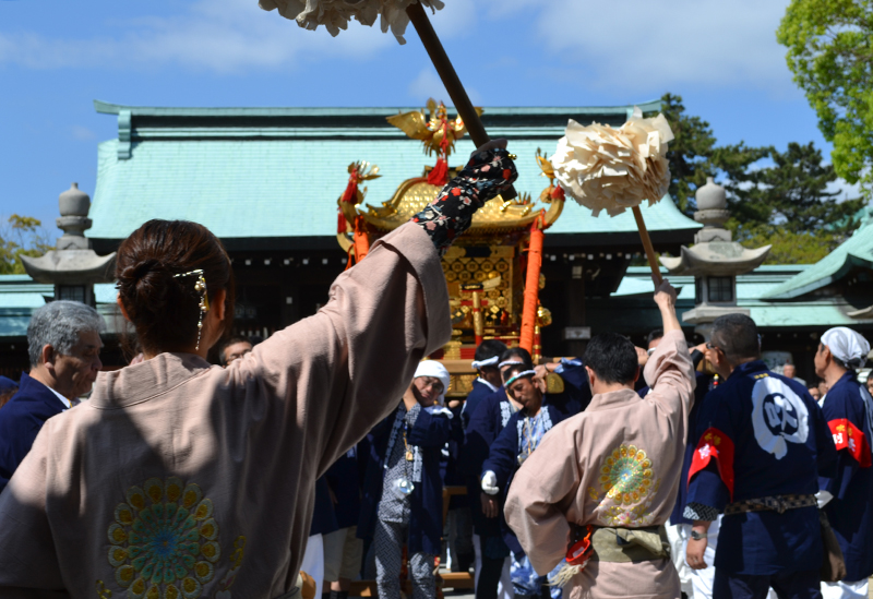 神輿渡御と継ぎ獅子が名物の「春季例大祭」