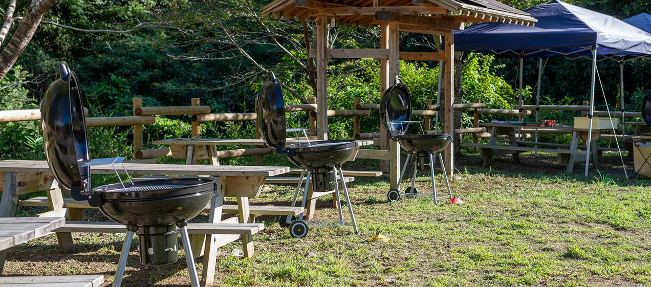 大自然のなかで手軽にリフレッシュしたい時は、4種類から選べる日帰りバーベキューセットがおすすめ。「プレミアム」はサーロインステーキ肉や海鮮、サラダまで楽しめると好評。ほかにも「スタンダード」「ベーシック」「キッズ」が揃う。食材の持ち込みもOK。
