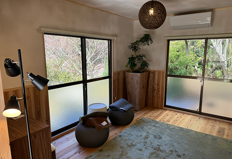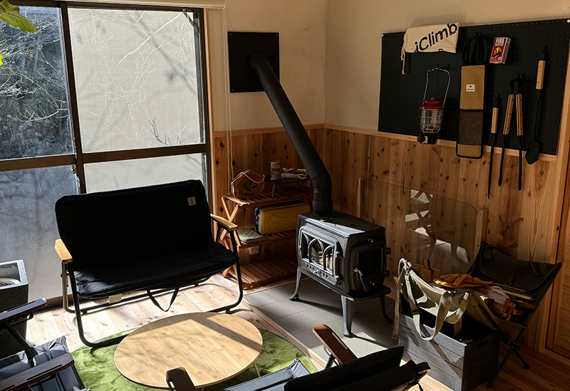 01.コテージはエアコンがあり基本設備が充実し、薪ストーブも完備(定員6名)