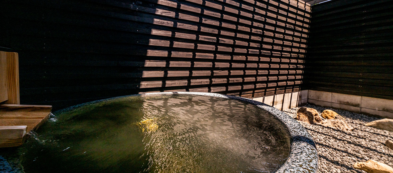 旅行や帰省など長距離運転時の疲労回復には、木のぬくもりあふれる空間で、肌に優しい濁り湯にゆっくり浸かって、コンディションを整える天然貸切温泉がおすすめ。