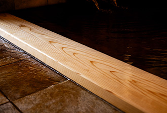 木のぬくもりあふれる広々とした室内は、温泉に入る前から杉の香りでリラックスできる。小さな子ども連れの家族や、入浴の介助が必要な人など、幅広い年代が周囲を気にせず、自分のペースで温泉が楽しめる。