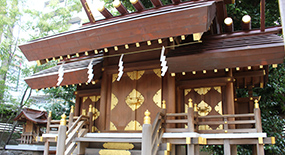 - めずらしい「子育て狛犬」や夫婦円満・縁結びの象徴である「夫婦銀杏」があり、安産・子育て・縁結びの神様として信仰が篤い。