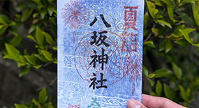 「八坂神社」を象徴する花火の印が押された御朱印は、社から徒歩約5分の場所にある「御嶽山神社」にて頒布。