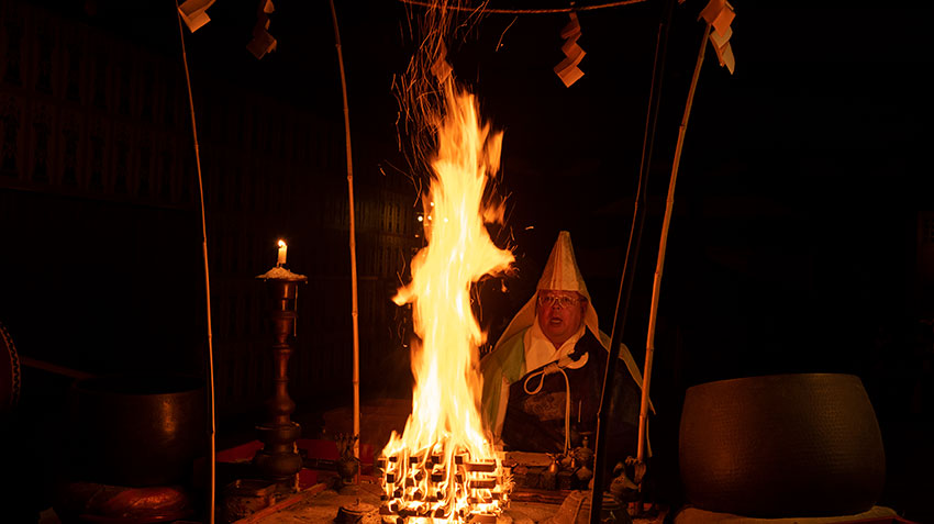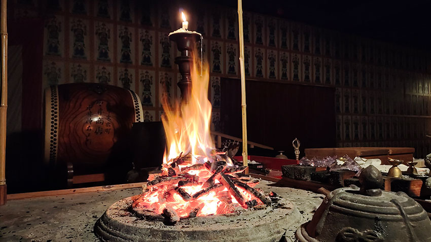 - 秘法とされる護摩焚きのご祈祷は、現在も修験道から受け継がれてきた“火を使い邪気を祓う”方法で行われている。