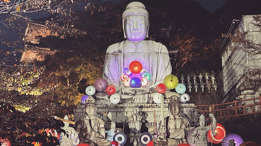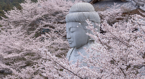 “桜大仏”や境内に咲く桜を鮮やかにライトアップ。 |