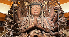 目を開いた柔和な姿の御本尊・十一面千手観音菩薩像は、眼病平癒や諸願成就の仏として信仰を集め、現在も全国各地から多くの参拝者が訪れる。観音様と深く縁を結び、眼病に対する霊験を授かるための祈祷も行っており、「眼病封じ祈願朱印」とともに、毎日申し込みを受け付けている。また、1964年(昭和39年)から、ハンセン病患者救済活動や教育助成事業、地域開発援助などの国際奉仕活動を通してインドとの交流が始まったことから建立された、総重量約1,500tの石の御堂「天竺渡来 大石堂」では、宗旨・宗派を問わず、納骨と永代供養を行っている。インドのアジャンター石窟寺院をモデルに、日本とインドに住む延べ12万人もの人々の手によって造られた壮大な石堂の最奥には納骨室があり、多くの御霊が安らかに眠っている。