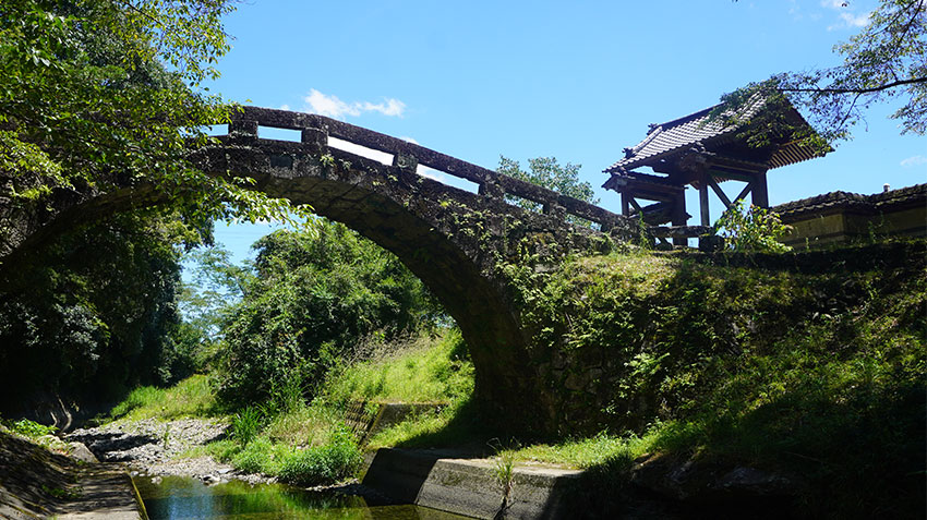 - 江戸時代に造られ、人吉市・球磨地方で最も古い歴史を持つとされる石造りの眼鏡橋と、巨岩をくり抜いた独特な形状の石門がある。