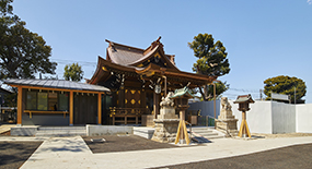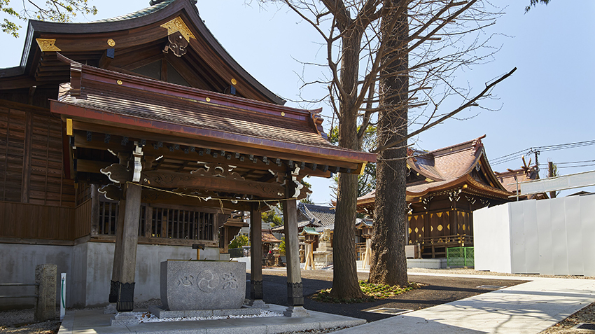 永い歴史のなかで幾度も修復・移築を繰り返しながら地域の信仰を支え続けた社殿は、2024年(令和6年)に、伝統的な技術を尊重しつつ現代の耐震性・機能性を取り入れた新たな姿に生まれ変わった。木造建築の技法を活かし、美しく繊細な彫刻が施された新たな社殿は、訪れる人々を木のぬくもりで包み込み心を和ませてくれるとともに、この地の守り神としての品格も感じられる。境内社として、“荏原七福神”の1柱である大國天を祀っている「甲子神社」と、祈りを捧げる人々が古くから絶えず訪れる「稲荷社」があり、主祭神の誉田別尊(ほんだわけのみこと)とともに地域を見守っている。東京都品川区でも特に見晴らしが良い標高約35mの高台に立つ社から見る、格式ある神社建築の美しさと自然、そして現代の街の繁栄を映す地域文化を象徴するその景色は、“しながわ百景”にも選ばれた。