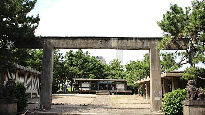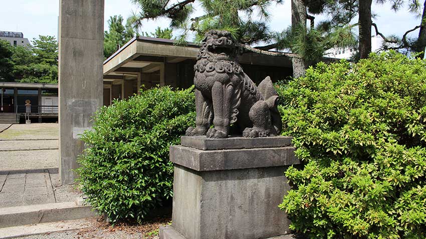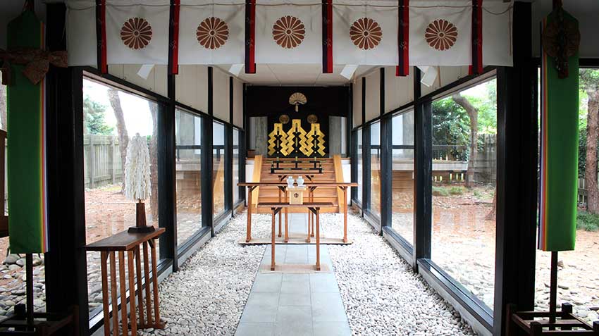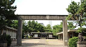 - 社殿を焼失したが奉賛会会長・熊谷太三郎氏らの尽力で再建。鉄筋コンクリート造りの全国でもめずらしい神社となった。