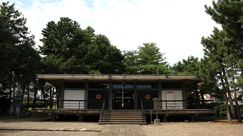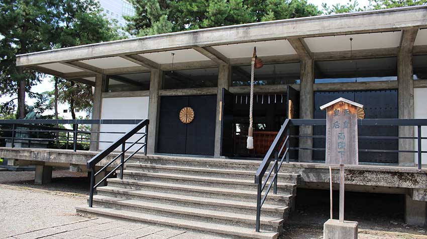 福井城跡にある福井県庁の西側に鎮座する「福井神社」。1943年(昭和18年)9月に、幕末の名君として知られる越前福井藩第16代藩主・松平慶永公(号:春嶽)を祀ったのが始まり。総檜造りの社殿が建立され、同時に日本最後の別格官幣社となった。戦禍に伴い社殿は全焼したが、奉賛会会長・熊谷太三郎氏を中心に再建に着手。やがて伝統的な神社の姿とは一線を画した鉄筋コンクリート造りの社殿が造営された。全国でもめずらしいモダニズム建築の神社は、地元はもちろん多くの観光客が訪れにぎわいを見せる。