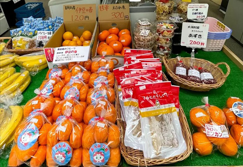 02.売店にはお土産、雑貨、酒、新鮮な野菜や果物が並ぶ