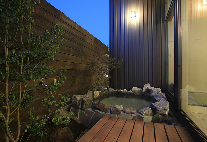 02.露天風呂付きの部屋では美しい夜景を眺めながらゆったりと湯に浸かることができ、心身ともに癒やされる