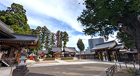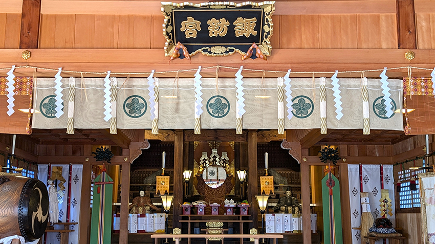 - 開拓や武勇の神ともいわれる主祭神・建御名方神(たけみなかたのかみ)。勝運や事業繁栄、五穀豊穣など幅広い御神徳をもたらす。