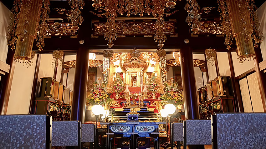 現在の伽藍は、1841年(天保12年)に善参和尚によって改築された建物で、歴史的な建築物としてその姿を残している。2003年(平成15年)には本堂と庫裏の大改修を開始。2004年に起きた新潟県中越地震による被害からも免れ、2005年(平成17年)に大改修を終えて盛大に落慶法要が行われた。特徴的な「ねじれ階段」や、おびんずるさま(なで仏)など見どころも多く、なかでも力強い筆致で描かれた五大明王の仏画は、それを目当てに訪れる人も多いという。自身の心と向き合う、“阿字観”という真言密教の瞑想(めいそう)法をはじめとした、寺院を身近に感じられる参加型のイベントや体験も開催。四季折々の花々が咲き誇る境内には、アジサイが周辺を囲む「あじさい大師」や真言宗十八本山の砂を敷いたお砂踏み場もあり、信仰が息づく安らぎの場所として人々に愛されている。