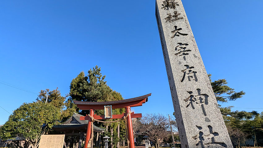 御神体が鎮まる御厨子(みずし)が総檜造りの様式であることから、創建は1469年からの文明年間以前と推定されている。昔は大宝寺城(のちの鶴ヶ岡城)の西御門付近に鎮座する城内天神で、1603年(慶長8年)に最上義光公が行った城郭改築を機に城下五日町に遷座。さらに旧天神町西を経て、1710年(宝永7年)現在地に遷座した。古くは「太宰府神社」の名称で歴代城主から篤く崇敬され、その後、庄内藩主・酒井氏が後ろ盾となり庶民の心のよりどころとして信仰を集め、今日まで歴史を刻み続けている。御祭神に菅原道真公を祀り、かつて最上義光公は米を運ぶ船の渡海無事を祈り、酒井氏の時代には奥方の病気平癒や参勤交代の道中安全、雨乞いなどを祈願し、藩の祈祷所としての役割を担っていた。現在も学問の神様への合格祈願に加え、人生の節目に平穏を願う多くの参拝者が訪れている。
