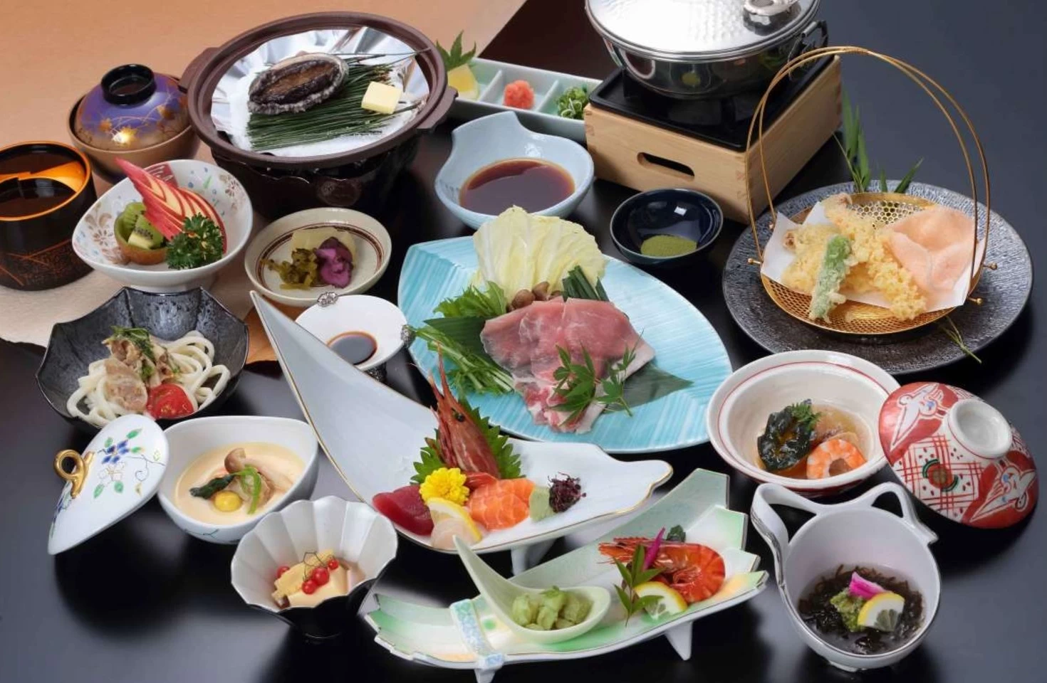 旬の海の幸を盛り込んだ活魚料理を味わえる日帰りプランが充実しており、季節限定の日帰りプランもあります。荒磯料理と知多牛すき焼き鍋がメインの日帰りプランは、8,690円〜。