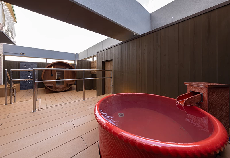 「国民保養温泉地」や温泉療法医が薦める名湯百選に選ばれた名湯「湯ノ浦温泉」を堪能できる宿です。内風呂の床は畳敷きで滑りにくく、快適に利用できるのも嬉しい。女性大浴場のみ、肌に良いといわれる「シルクセリシン風呂」が備わっています。さらに、2025年3月にリニューアルした露天スペースには、「バレルサウナ」と源泉を利用した信楽焼の水風呂(温泉源泉温度19℃)を新設。木のぬくもりによるリラックス効果や疲労回復効果も期待できるサウナを堪能しましょう。