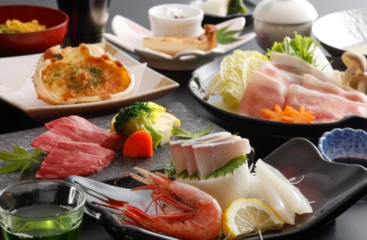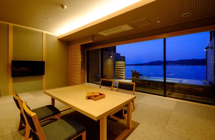 東郷湖のほとりに佇む「湖上に浮かぶ絶景の宿 はわい温泉 千年亭」は、まるで湖に浮かんでいるかのような開放感あふれる温泉宿。源泉掛け流しの天然温泉「幸助湯」、庭園の雰囲気を楽しめる「千年の湯」といった湖上露天風呂が自慢です。日本海の新鮮な海の幸や地元の食材を使用した料理も好評。露天風呂付きの客室やサウナ付きの客室をはじめ、夫婦、友人、ファミリーなど、シーンに合わせた多彩な客室が揃っています。