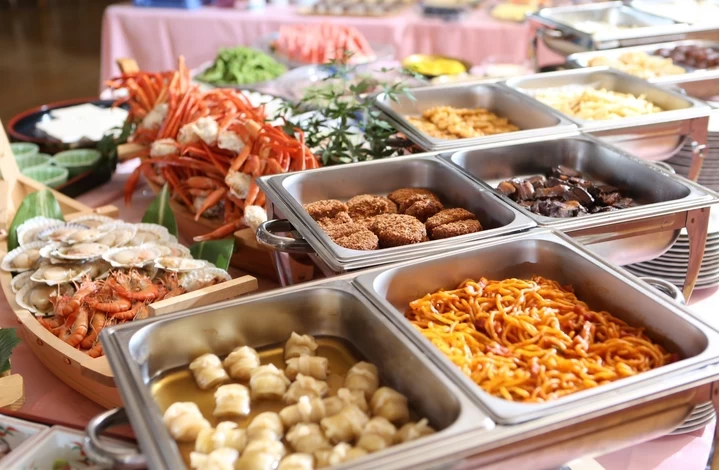 午前7時~10時まで、1階のレストラン「Buono!Buono!」にて、無料の朝食をセルフサービスで提供しています。お風呂上りにゆっくり寛げるお座敷の「のんびり亭」では、「本日のおすすめランチセット」や「鶏の唐揚げ定食」、「野菜ラーメン」などのメニューがリーズナブルに楽しめます。