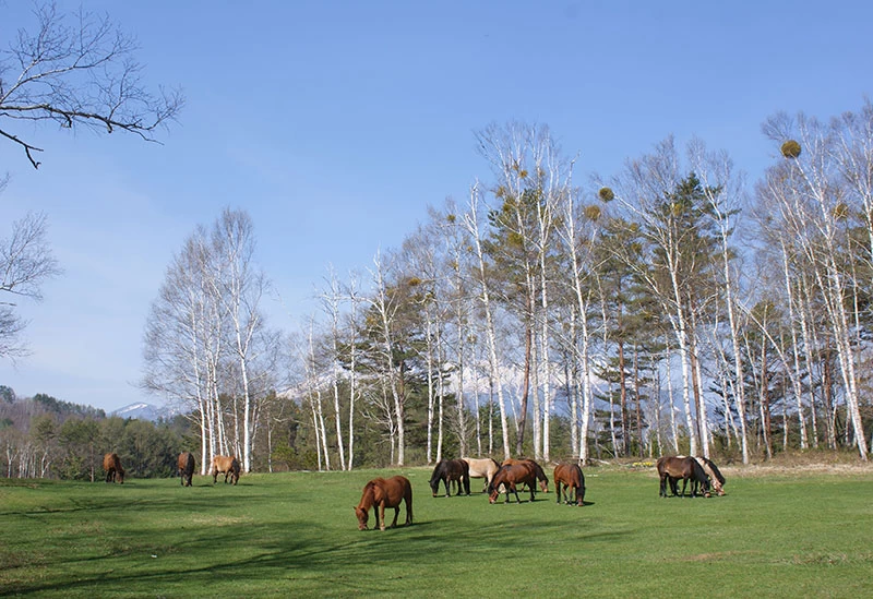 散策やサイクリングが楽しめる開田高原へは、車で約20分。近くには「木曽馬の里」もあり、乗馬や馬車体験を満喫できます。