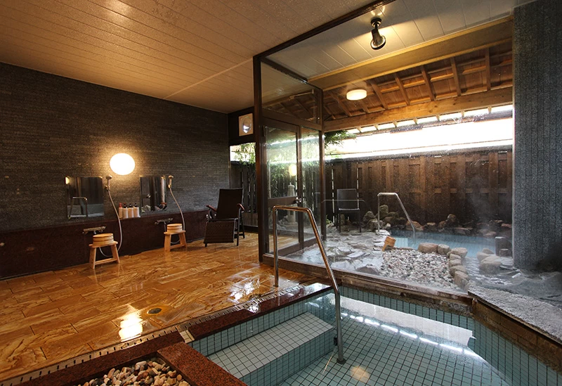新潟県の四季折々の食材を生かした料理が自慢の宿「光兎の宿 あらかわ荘」。天然温泉を満喫できる大浴場と、プライベートに寛げる貸切温泉を備えています。館名にもなっているウサギや、室内飼いの小型犬と一緒に宿泊できるため、ペット連れのお客様も安心して滞在できます。高瀬温泉の大浴場には「古代檜」と呼ばれる巨木檜を使用し、洗い場は畳敷きで足元が温かく滑りにくい造り。年齢を問わず安全に利用できるのも魅力です。湯温は42℃に保たれており、24時間好きなときに入浴を楽しめます。