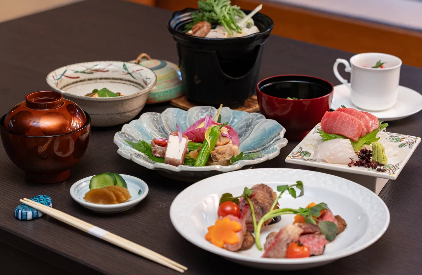 仙台の奥座敷・秋保温泉の中心に佇む「心和む名湯の宿 曽良一」。全16室の小さな宿ならではの落ち着いた雰囲気の中、ゆったりとした時間を過ごせます。館内は昔ながらの趣を残しつつ改装され、快適に滞在できます。秋保温泉の源泉を加水・加温・循環なしで楽しめる掛け流しの湯は、やさしい肌あたりが魅力。夕食は仙台牛ステーキを主役に、前菜から鍋、温物まで肉尽くしの会席料理を用意していて、季節の前菜や仕入れに合わせた献立で、連泊でも肉の旨みをたっぷり味わえます。