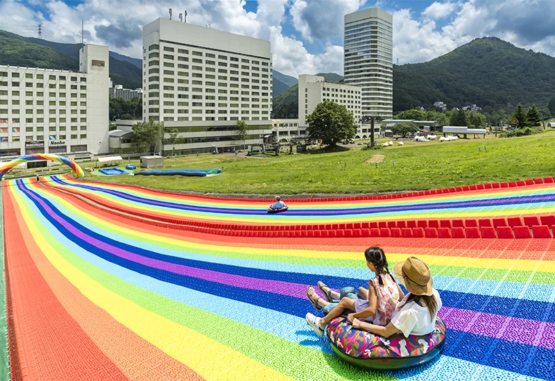新潟県妙高市のマウンテンリゾート「ロッテアライリゾート」は、約100万坪の敷地を有しており年間を通して遊び尽くせます。全14コースのスキー場をはじめ、さまざまな雪遊びを楽しめるスノーシーズンは大人気。