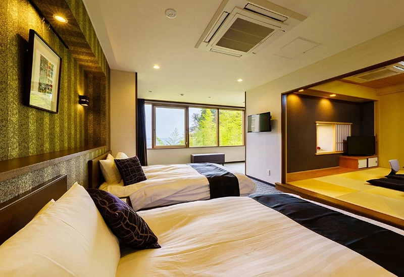 由布院ユウベルホテルは由布岳の麓に佇む、大自然に囲まれた温泉宿です。この宿では別館に温泉があり、1階、2階それぞれのフロアに大浴場、露天風呂、サウナが完備されています。客室は和洋が融合したラグジュアリー感あふれる部屋や、内風呂も完備された上質な和の空間を堪能できる部屋が選べます。宿の周辺には由布院の自然や歴史、文化がつくりだした観光名所が数多くあり、大分観光の拠点としても機能するでしょう。