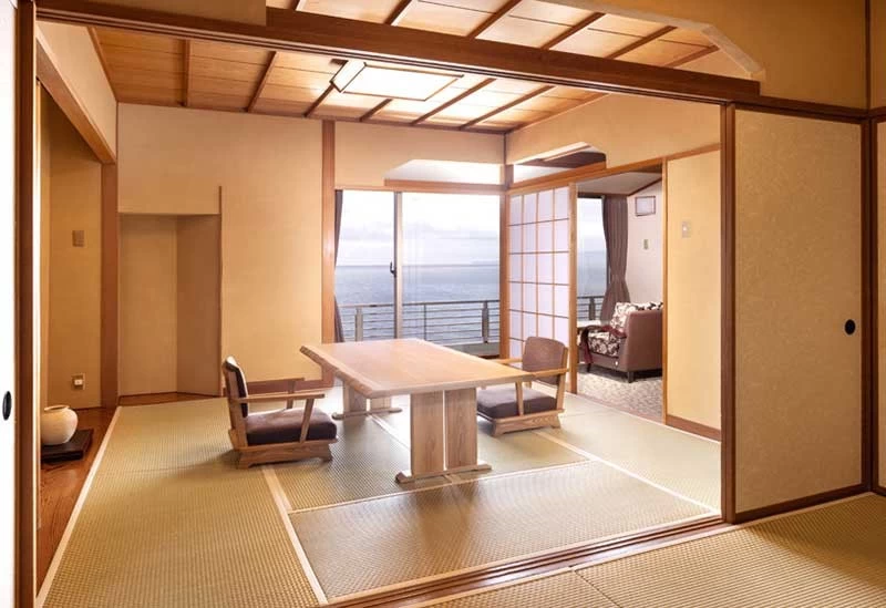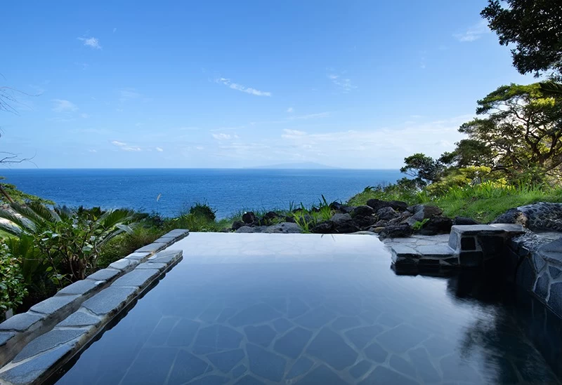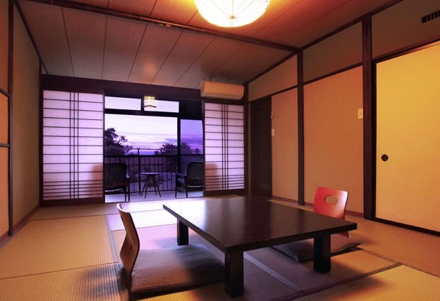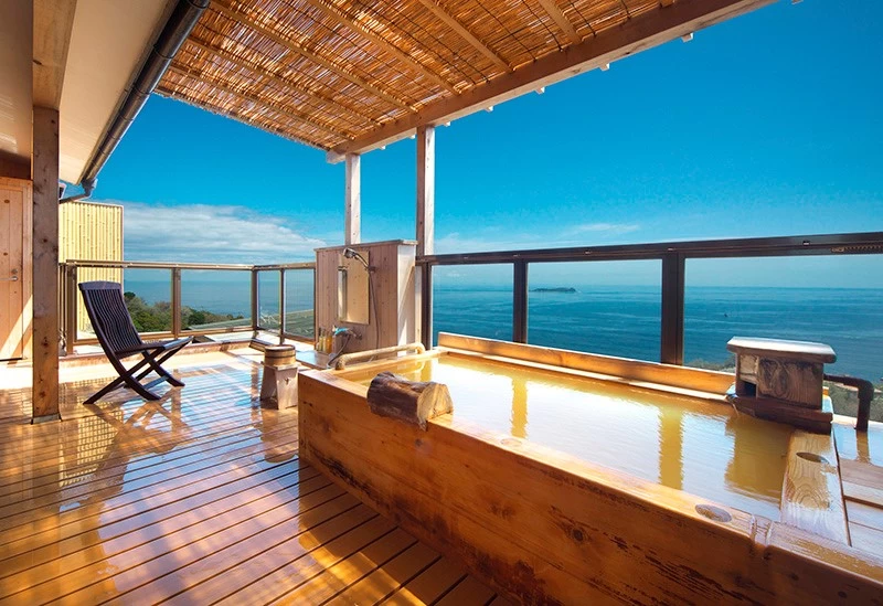 全室オーシャンビューと、リゾート感が味わえる温泉旅館です。客室からは伊豆大島や太平洋の絶景が望め、朝夕で異なる景色を楽しめます。使用している温泉は、2種類の自家源泉から引く天然温泉です。優しい湯質に、心も体も解きほぐされるでしょう。夕食にはフレンチ懐石や鉄板焼きなど、伊豆の食材を活かした料理が提供されます。また、長寿祝いや結婚記念日での利用者には、おもてなしとしてお祝いケーキやワインなどの特別な演出も叶えてくれます。