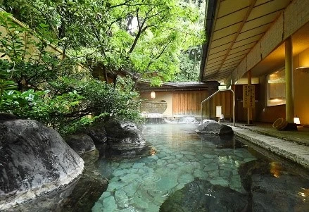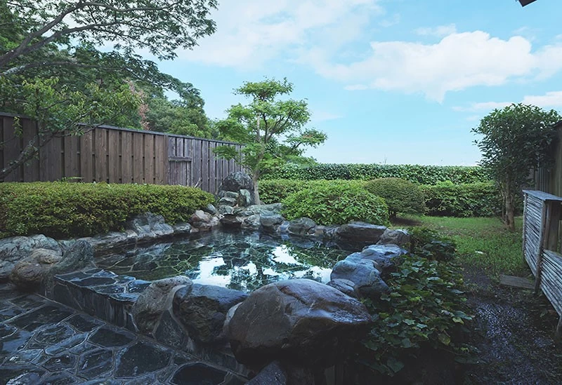 全室に露天風呂を完備している温泉宿です。朝夕問わず、日常で疲れた体をじんわりと温めてあげられますよ。湧き出る湯は万病を癒やす効果があるといわれており、徳川家康にも愛されていたと伝えられています。また、客室はファミリー利用に適した和室はもちろん、ホテルのようにベッドルームが付いた贅沢なメゾネットタイプも完備。庭園では能舞台などの趣向も楽しめるため、宿で過ごす時間を上質に彩りたい方におすすめです。