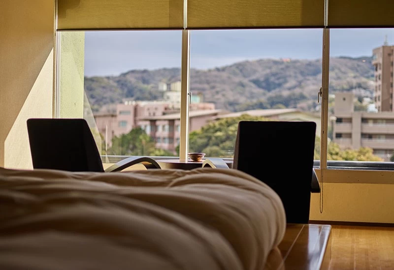 歴史ある伊東温泉から湯を引く温泉宿です。なめらかな泉質の大浴場や露天風呂、飲泉処など、湯浴みの多彩な楽しみが揃っています。また、美肌ケアの温泉パックや化粧水なども体験でき、女性に嬉しいおもてなしを随所に感じるでしょう。客室は上質な和モダンで居心地よく、夫婦やカップルにおすすめ。定員5名まで利用できる和室もあるため、ご家族での滞在も快適です。