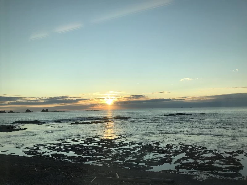 目の前に広がる枯木灘(かれきなだ)のダイナミックな海景