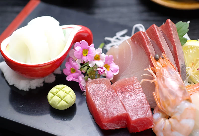 食事には旬の海の幸を使った料理が並び、なかでも地元米を専用釜で炊き上げる「海鮮釜飯」は、ぜひ味わいたい名物です。