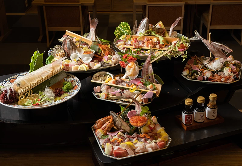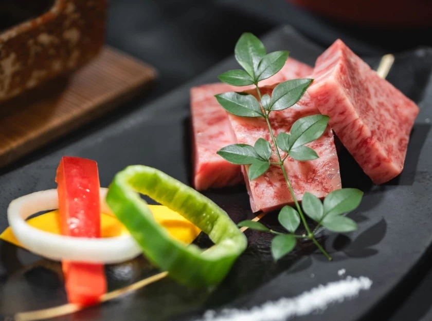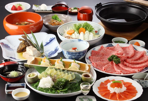 客室は、樫の木立を一望できる絵画のような窓が印象的な洋室など、洗練されたモダンな空間設計が魅力的。格子戸で仕切られたプライベート感のある食事処では、最高級ブランドの佐賀牛をメインに、料理長が腕を振るう華やかな会席料理を楽しめます。