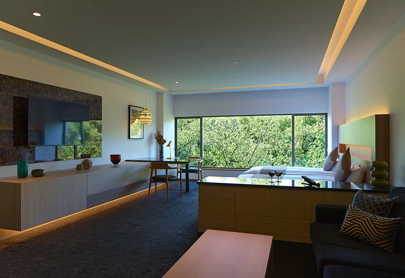 最大の魅力は、専属茶師が点てるお茶を味わえるティーセレモニーや茶アロマのサウナなど、お茶の恵みに包まれるサービス。別邸では、食事やドリンクが料金に含まれる贅沢なオールインクルーシブも楽しめます。茶・湯・食のすべてで、心身が深く解きほぐされる特別な時間を過ごせるでしょう。