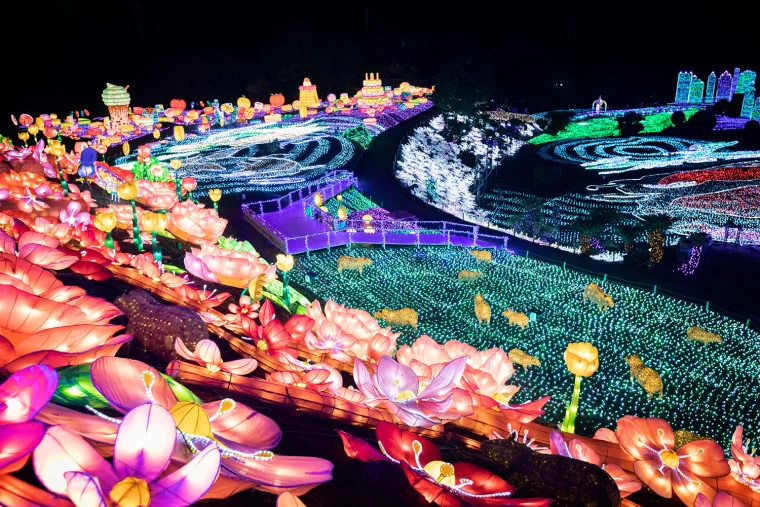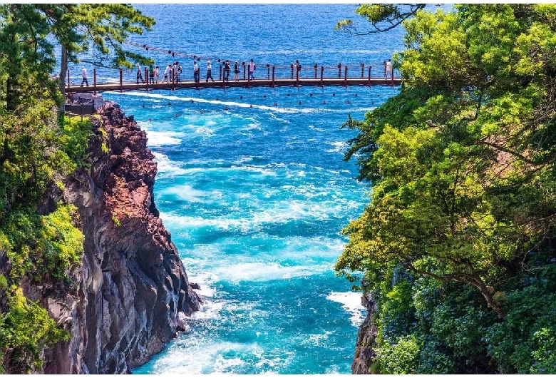 東京から好アクセスの伊豆高原へ1泊2日の温泉旅へ! 1日目は「小室山」「一碧湖」「城ヶ崎海岸」と絶景地を巡り、夜は「伊豆ぐらんぱる公園」の体験型イルミネーションを楽しみ、温泉宿に宿泊。2日目はイルカと遊べる施設や「来宮神社」「熱海サンビーチ」など、熱海の観光地を訪れます。