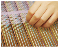 色とりどりに染めた糸を使用し、緻密に織り上げていく西陣織。美しい光沢としなやかさを併せ持つ絹糸を何色も使い、経糸(たて糸)と緯糸(よこ糸)の織り組織の計算され尽くした組み合わせにより、繊細かつ優美で流麗な表現が生み出されていくのです。