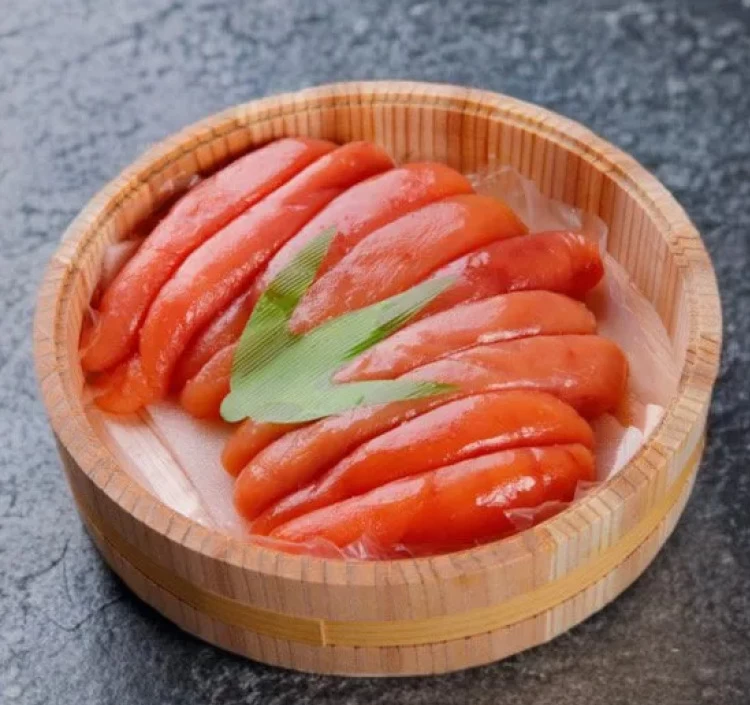 北海道虎杖浜前浜で獲れた助宗鱈から取り出した真子と呼ばれる卵から選び抜かれた「完熟純白卵」。10トンの源魚からわずか数キロしか採取できないという希少な卵。