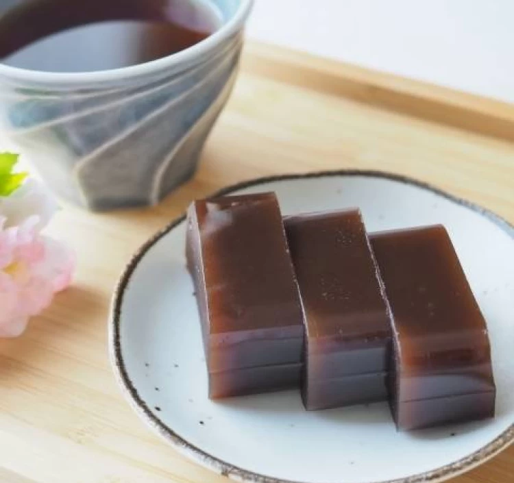 主な材料は厳選した寒天と砂糖と小豆。一粒一粒皮を取り除いた“剥き小豆”を使って丁寧に練り上げています。皮が入らないことで、こし餡よりさらにあっさりした透明感ある味わいと色味が楽しめます。風月堂の和菓子の中でも隠れた人気商品です。