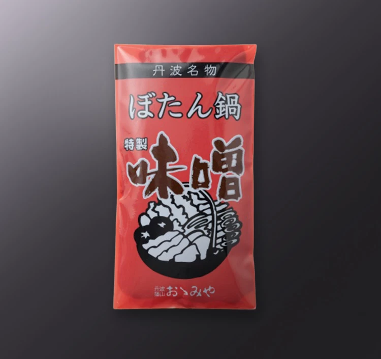 猪肉を知り尽くした専門店だからこそ完成できた、特製ぼたん鍋味噌です。長年の経験をもとに生み出された味噌は猪肉にぴったり。昆布だしで伸ばすだけで、簡単に本場の味をお楽しみいただけます。ぜひお召し上がりくださいませ。
