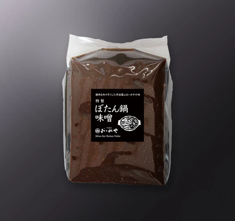 猪肉を知り尽くした専門店だからこそ完成できた、特製ぼたん鍋味噌です。長年の経験をもとに生み出された味噌は猪肉にぴったり。昆布だしで伸ばすだけで、簡単に本場の味をお楽しみいただけます。ぜひお召し上がりくださいませ。
