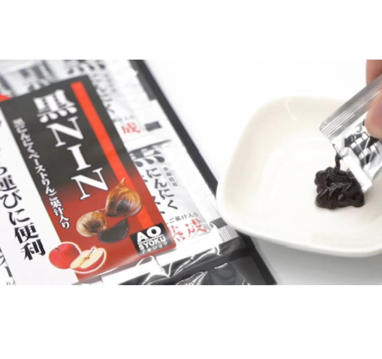 余計なものは一切いれず厳選された青森県十和田産熟成黒にんにくと、青森県津軽地域で収穫されたりんご果汁のみを使用し、「栄養」と「美味」を1包にギュッギュッギュと贅沢に詰め込みました。