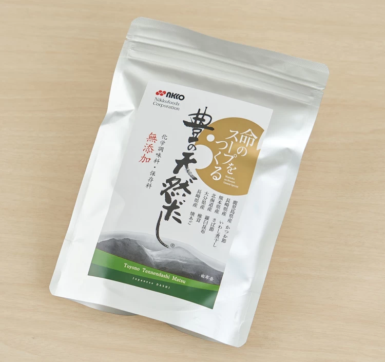 素材の味にこだわる天然だしパック専門会社が作った、保存料、添加物無添加の天然だしです。かつお節、いわし煮干し、さば節、昆布、椎茸、焼あごに少量の讃岐食塩と本醸造醤油を混合。ほのかな味がついていますので、これだけでだしのきいた薄味の料理の味付けが完成します。